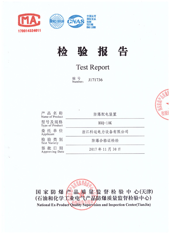 防爆配電裝置 檢驗(yàn)報(bào)告